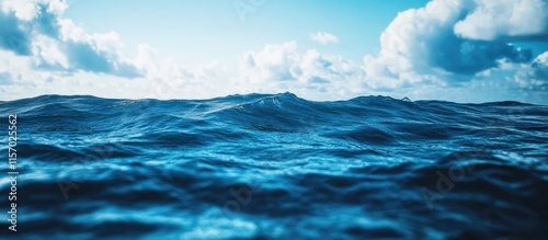 tranquil ocean scene with gentle waves under a bright blue sky and fluffy clouds creating a serene coastal atmosphere