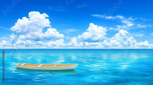 Tranquil Ocean Scene with Small Rowboat Under Summer Sky
