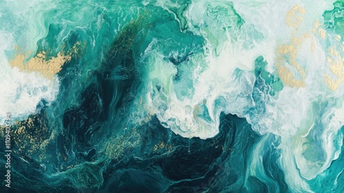 Tranquil ocean waves washing up on the shore, with clear, emerald-colored water