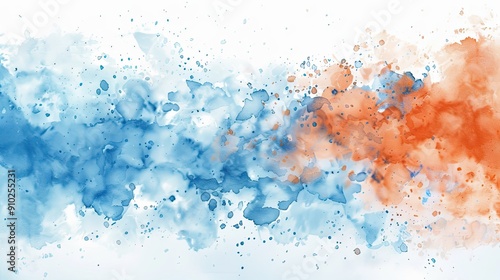 Tranquil Pastel Blue and Vibrant Orange Watercolor Splashes on Light Background