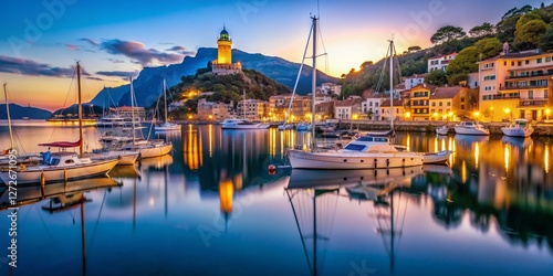 Tranquil Port de Soller Harbor at Dusk: Sailboats & Lighthouse