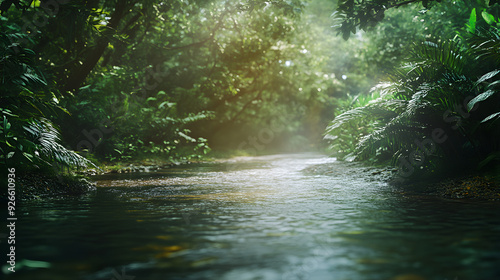 Tranquil River Oasis Minimalistic Refuge in Lush Forest Landscape