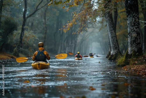 Tranquil River with Kayakers Paddling Downstream