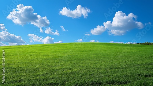 Tranquil Rural Landscape: Vibrant Sky, Expansive Grass Fields and Serene Nature Scenery in Springtime