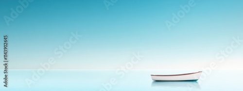 Tranquil Seascape with Isolated White Boat on Calm Water and Clear Blue Sky for Serene and Minimalist Background Design