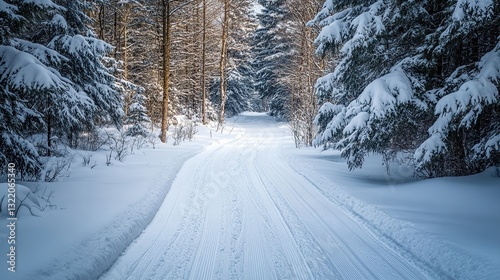 Tranquil Snow-Covered Trail Perfect for Cross-Country Skiing