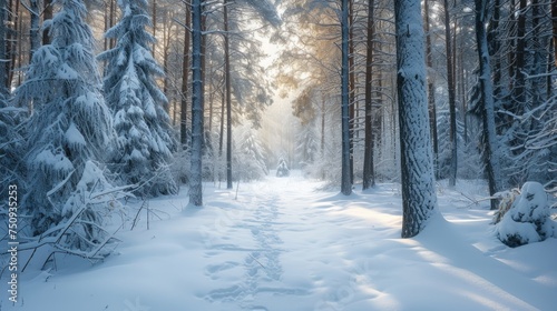 Tranquil Snow-Covered Trees at Sunrise