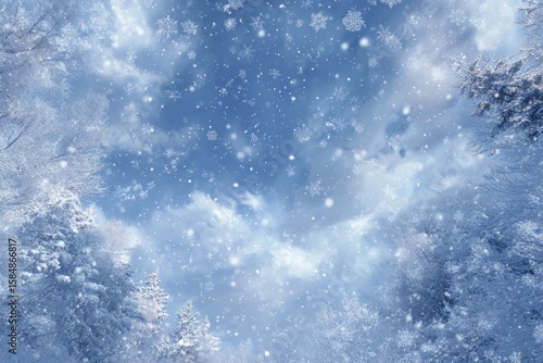 Tranquil Snowfall Under a Clear Winter Sky, Capturing the Elegance of Nature's Frosted Beauty