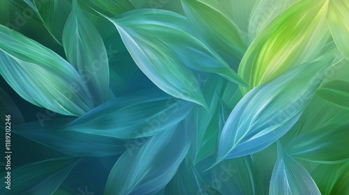 Tranquil Tropical Abstract in Gradient Greens and Blues with Subtle Leaf Patterns
