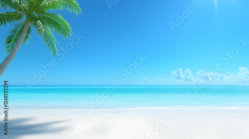 Tranquil Tropical Beach Scene with Palm Tree and Turquoise Ocean