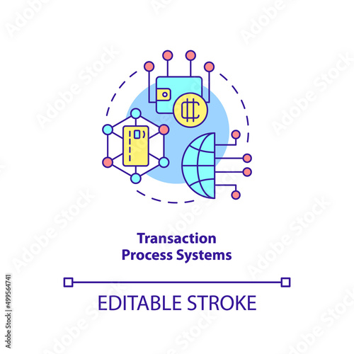 Transaction process systems concept icon. Information system type abstract idea thin line illustration. Payment processing. Isolated outline drawing. Editable stroke. Arial, Myriad Pro-Bold fonts used