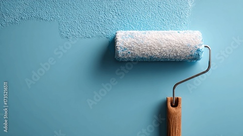 Transforming spaces with a fresh coat of vibrant blue paint, a roller effortlessly glides, creating a clean, modern, and inviting atmosphere for home renovation and interior design projects.