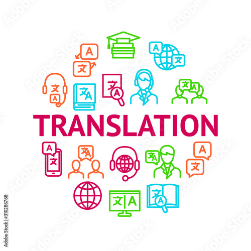 Translation Signs Thin Line Line Round Design Template Ad. Vector