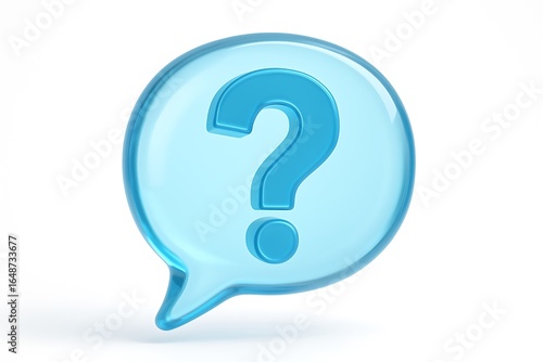 Translucent blue question mark bubble on white background, symbolizing curiosity or inquiry