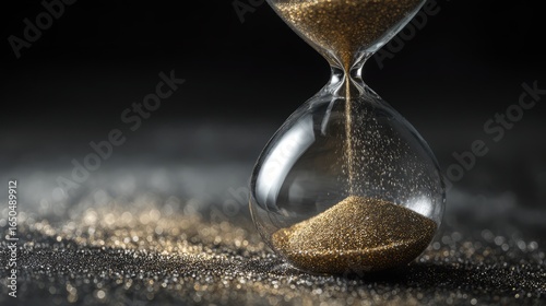 Translucent hourglass showing decaying cells transforming into glowing new structures, symbolizing cellular renewal.