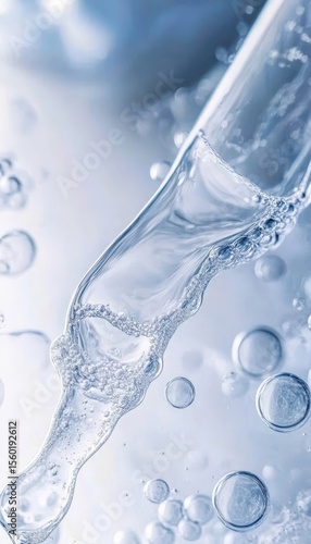 Translucent hyaluronic acid serum composition showcasing purity with elegant bubble inclusions.