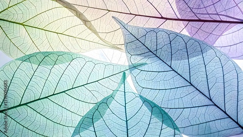 Translucent Leaves in Pastel Hues with Intricate Veins and Natural Elegance