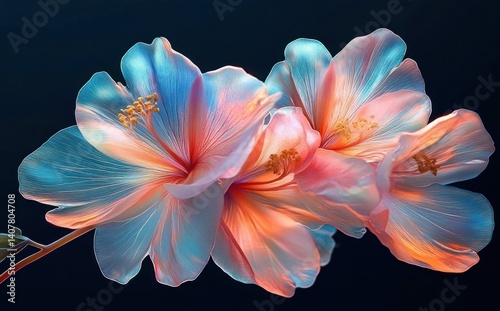 Translucent Vibrant Flowerheads with Iridescent Petals on Black Background for Spiritual Concept