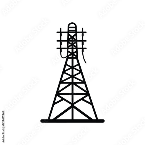 Transmission Tower Icon Isolated on Transparent Background Minimalist Black Line Art