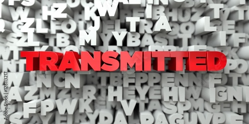 TRANSMITTED - Red text on typography background - 3D rendered royalty free stock image. This image can be used for an online website banner ad or a print postcard.