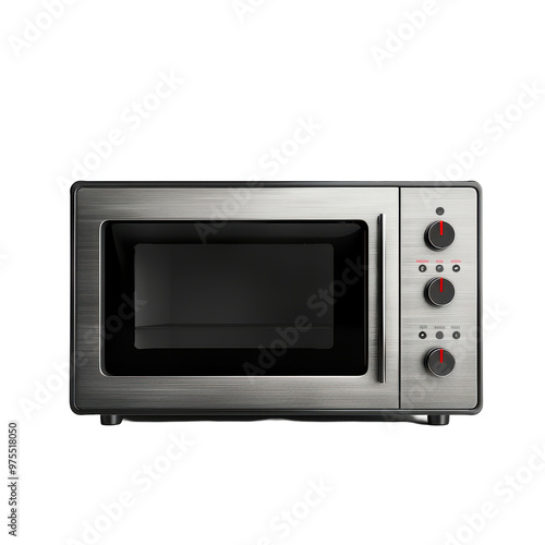 Transparent A silver microwave oven with a wooden handle
