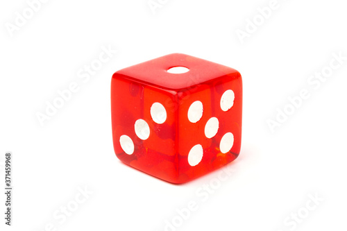 Transparent and red glass dices isolated on white background.