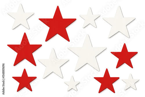 Transparent background filled with scattered red and white five-pointed stars varying in size, generating patriotic, celebratory mood
