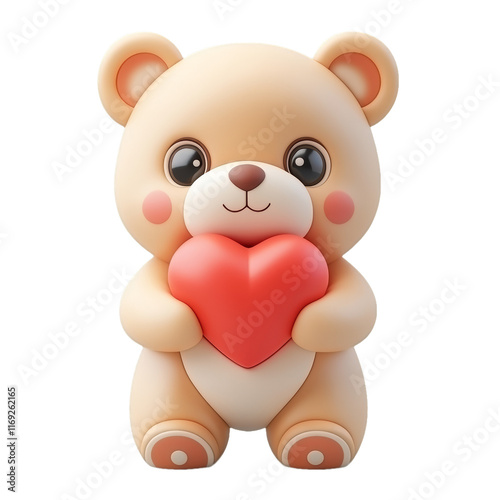 [Transparent Background PNG]Cute Cartoon Bear Holding a Heart