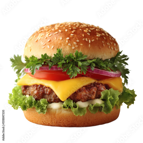 [Transparent Background PNG]Delicious Cheese Burger Close Up