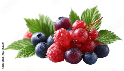 [Transparent Background PNG]Fresh Colorful Berries with Leaves