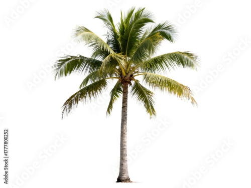 [Transparent Background PNG]Tall coconut palm tree with green fronds against white background