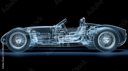 Transparent Classic Sports Car: Engine and Chassis X-Ray View.