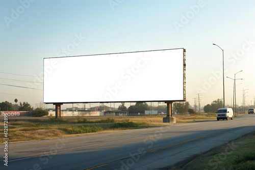 Transparent, empty, blank billboard mockup near a highway road for outdoor advertisement and promotion for commercial marketing. Generative AI