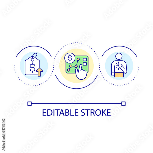 Transparent financial report loop concept icon. Provide honest business info. Pricing policy abstract idea thin line illustration. Isolated outline drawing. Editable stroke. Arial font used