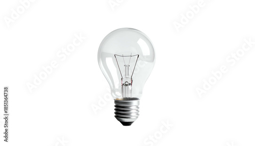 Transparent glass lightbulb with internal filament, base metal, floating over a black background