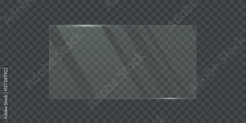 Transparent glass rectangular frame. 3d plastic horizontal screen with rectangular shape. Reflective surface panel with light glare on transparent background. UI element. Realistic vector illustration