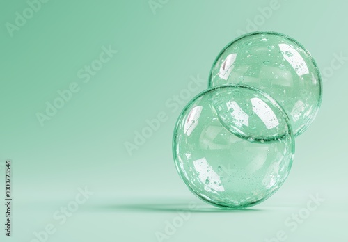Transparent glass spheres on green background