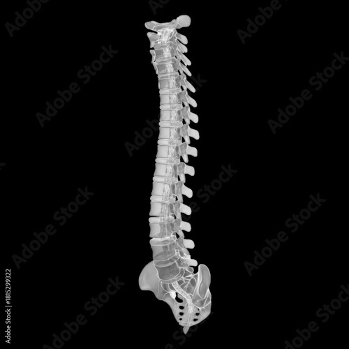 Transparent human spine showing anatomical structure and nerves isolated on transparent background