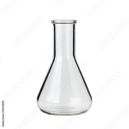 Transparent laboratory flask, perfect for scientific experiments and chemistry work. Essential for any lab environment.
