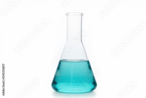 Transparent Laboratory Flask with Blue Liquid on White Background