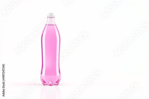 transparent pink plastic drinking bottle standing,white background,isolated,blank,drink.