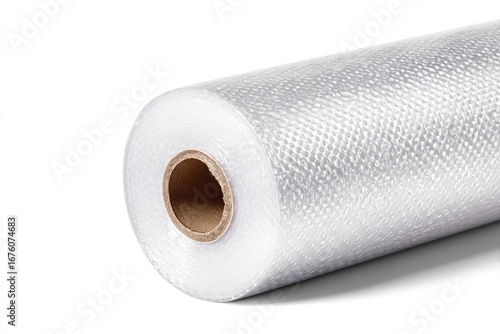 Transparent plastic roll, likely vacuum sealing film, on a white background. A central cardboard core is visible