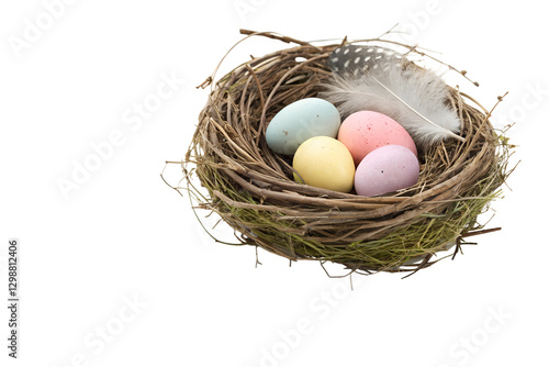 Transparent PNG of a Nest with Easter Eggs and Feathers – Rustic and Natural Style