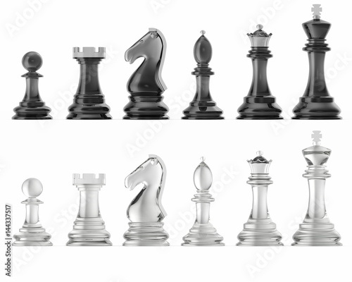 Transparent set of icons chess, isolated on white background, intelligent game, 3d rendering