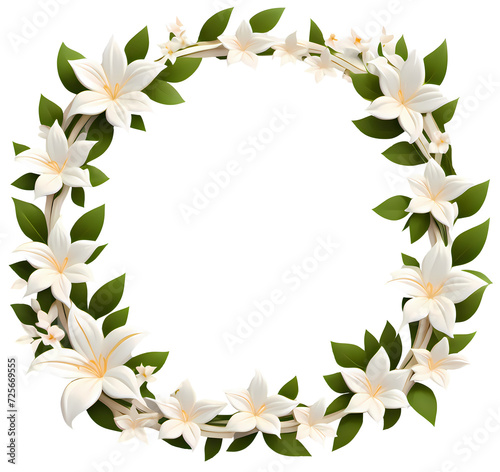 Transparent white floral wreath frame. elegant flower border. isolated cleared background PNG.