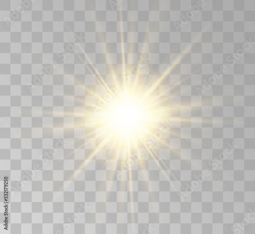 Transparent yellow sunlight special lens flash light effect. Front solar flare lenses
