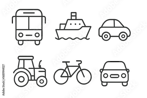 Transport line icons set. Bus, ship, car, tractor, bicycle vector symbols. Public and personal transportation pictograms for web, mobile app, infographic. Editable stroke design elements.