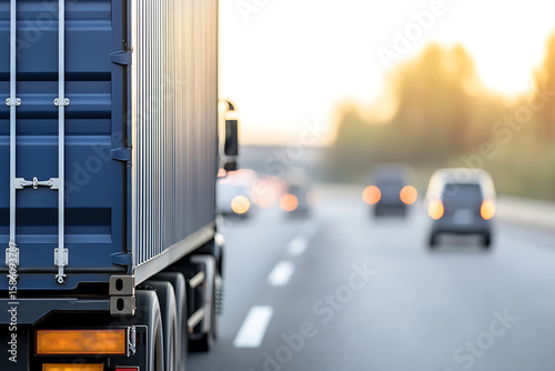 Transport truck on highway, conveying goods efficiently. Automotive. Business. Export. Freight. Logistics. Transport. Transportation.