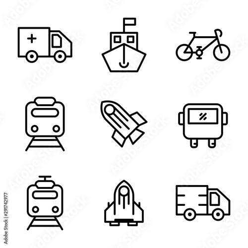 Transportation icon set include ambulance, transportation, car, transport, ship, bike, bicycle, train, vehicle, space, rocket, bus, truck