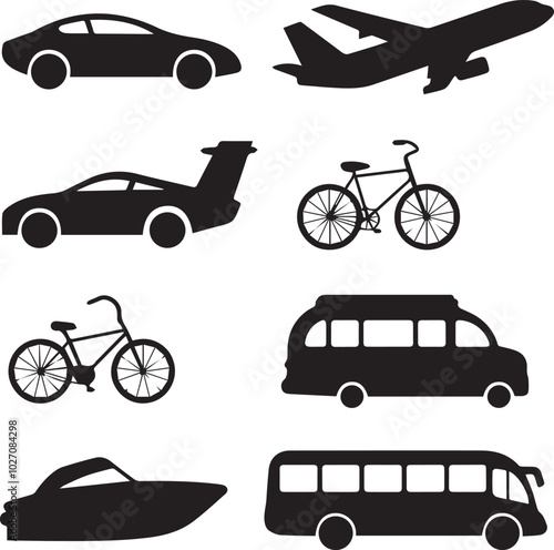 Transportation Silhouettes Collection - Cars, Bicycles, Airplane, Bus, and Boat